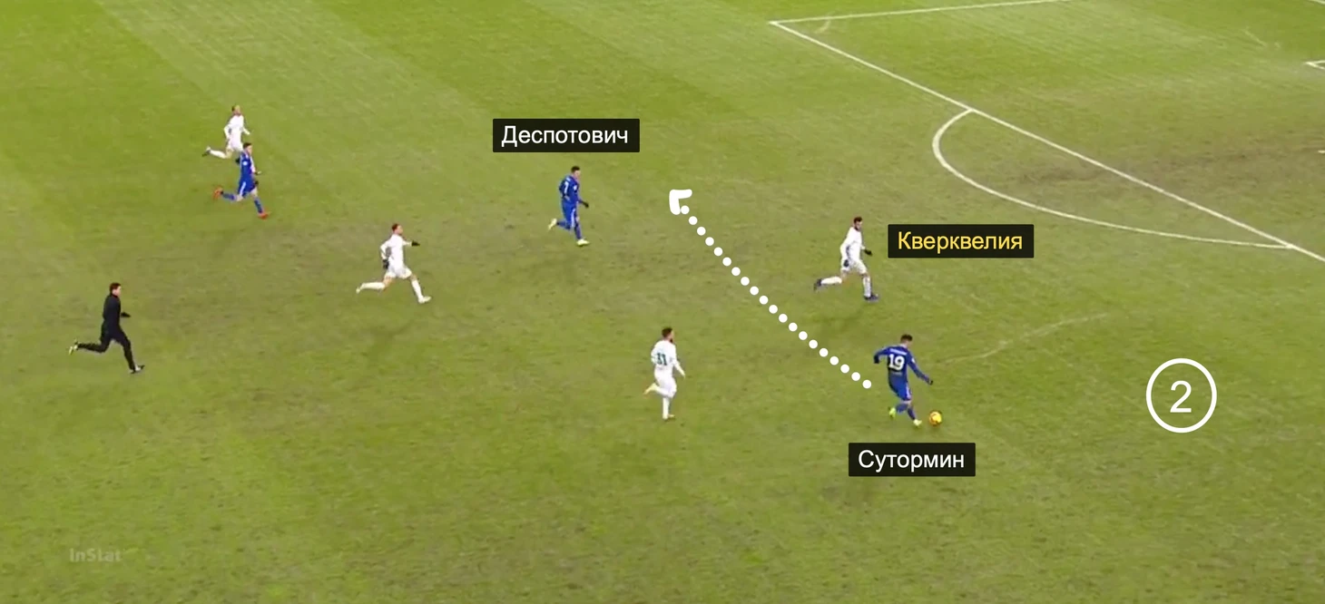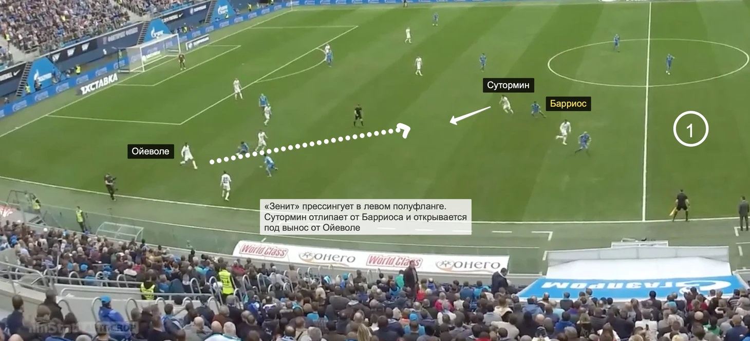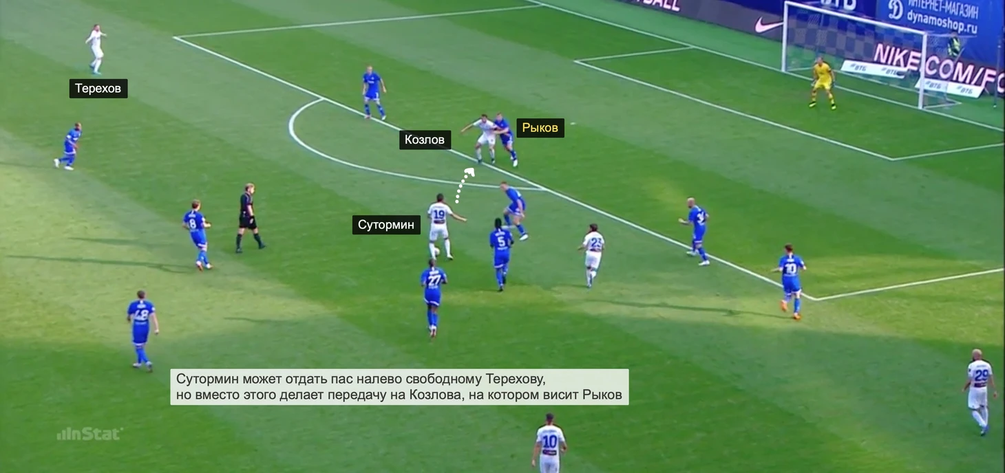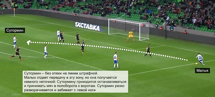 Сутормин прекрасно чувствует свободные зоны не только за спинами защитников: в матче с «Зенитом» он открылся под подачу Терехова между Ивановичем и Ракицким, против «Краснодара» и ЦСКА – в опорной зоне.