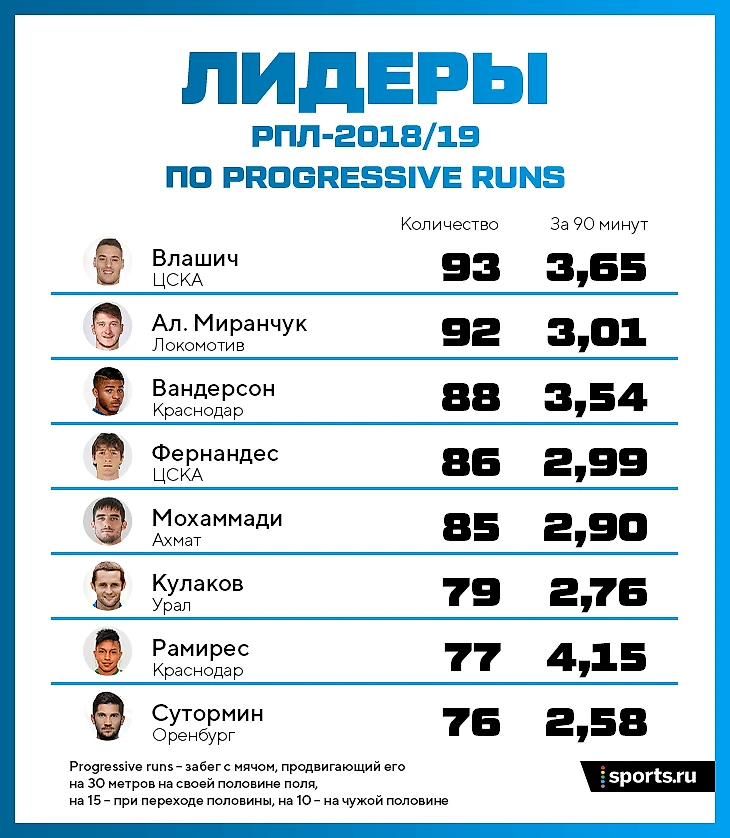 Возвращение ближе к атаке почти не повлияло на ударную статистику Сутормина (теперь он наносит 1,95 удара за 90 минут), зато превратило его в настоящую машину контратак: Алексей классно открывается за спинами защитников и очень быстро бежит (в том числе с мячом).