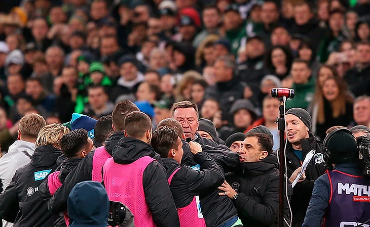Из-за травмы Оздоева начались разборки, итогом которых стала небольшая драка скамейка на скамейку.