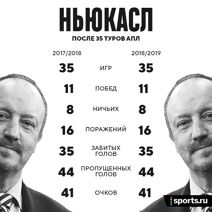 В «Ньюкасле» испанский тренер колдует над числами. Просто посмотрите на показатели команд после 35 туров в этом сезоне и в прошлом: