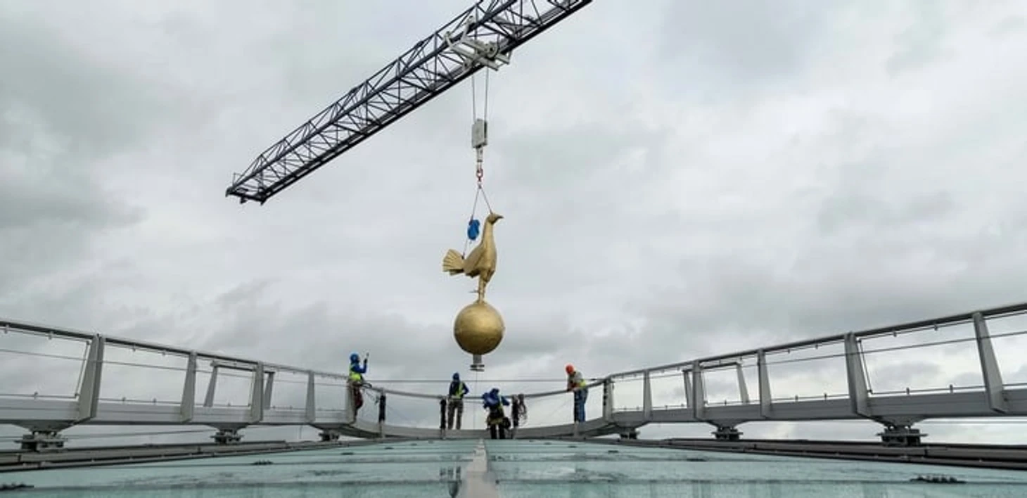 Высота новой версии золотого петушка – 4,5 метра, это почти вдвое больше оригинала.