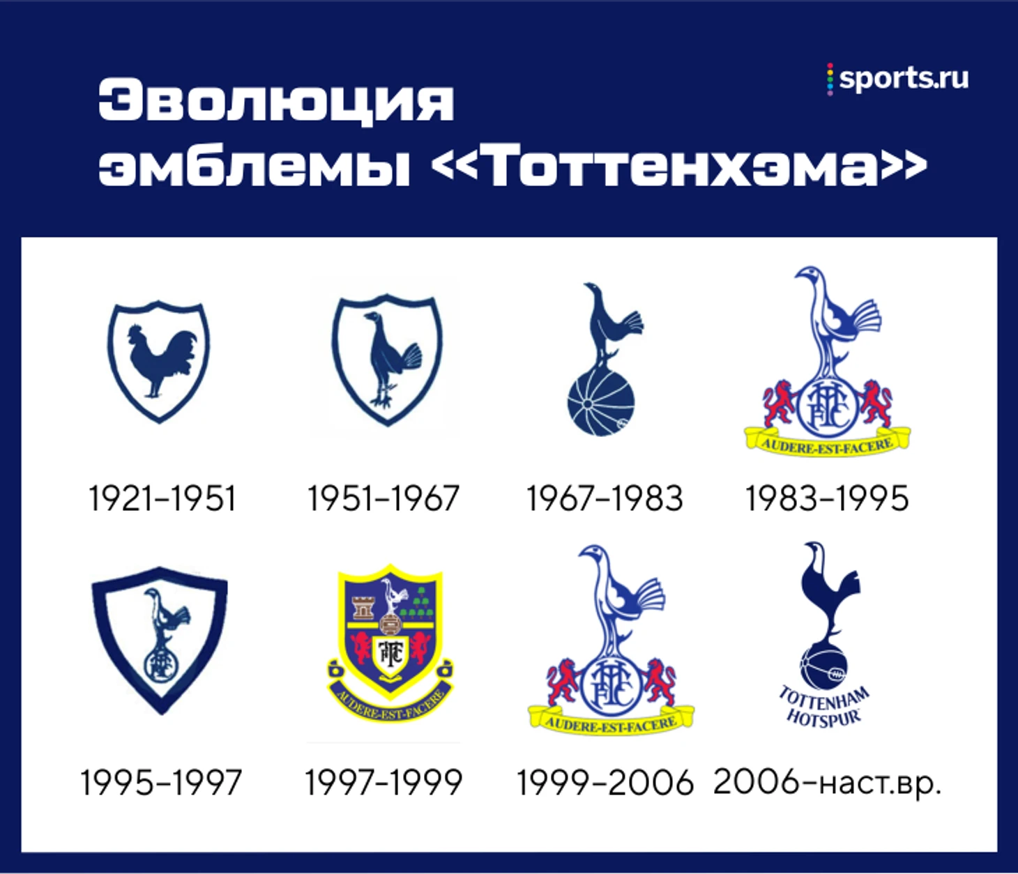 На эмблеме «Тоттенхэма» петух появился в 1921 году. С тех пор лого меняли 7 раз, но петуха никто не убирал.