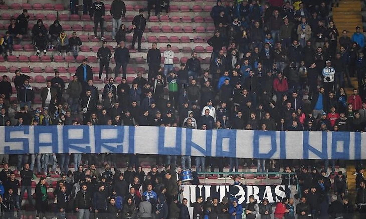 За пару часов до этих событий, на стадионе Сан-Паоло в Италии появился баннер в поддержку бывшего наставника Наполи. "Сарри один из нас" утверждает надпись на полотне.
