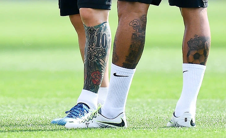 В конце 2014-го Месси добавил новые татуировки на голень левой ноги. Там разместилась целая композиция, связанная с футболом: мяч, меч и десятый номер.