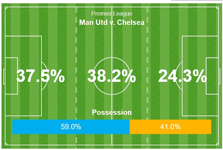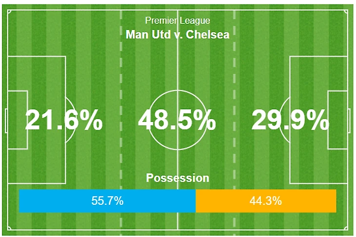 Но главное достижение ромба – контроль в центре поля по ходу всего тайма. «Юнайтед» забил быстрый гол, но даже после этого «Челси» не смог забрать себе мяч – 56% владения у «МЮ» по итогам тайма. Уникальная ситуация: обычно, даже играя ужасно, «Челси» Сарри владеет мячом. Чаще всего оказывавшийся свободным игроком Матич сделал больше всего точных передач.