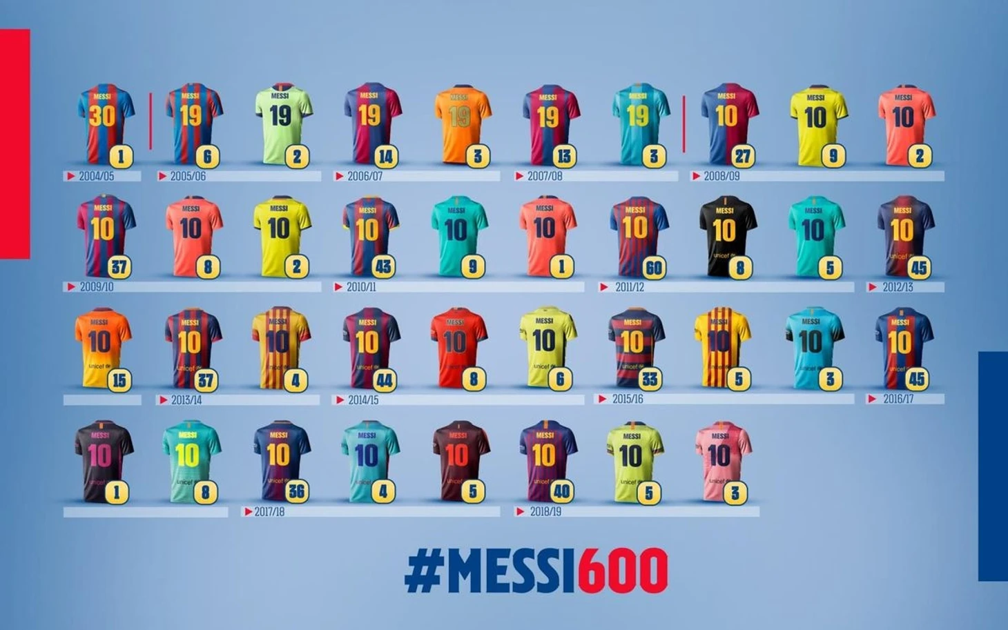 Интересная статистика. 600 голов Лионеля Месси в различных футболках «Барселоны»
