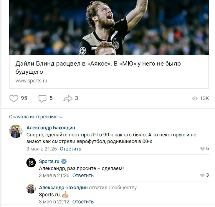 На прошлой неделе пользователь Sports.ru Александр Бахолдин в паблике сайта в ВК предложил сделать пост о том, какой была Лига чемпионов в 90-е годы.