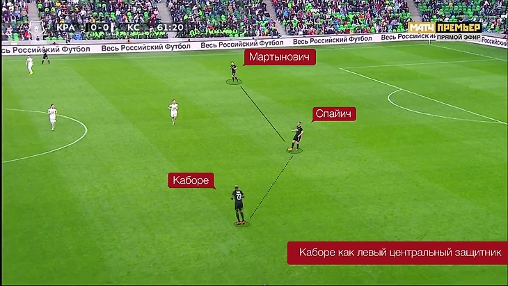 В недавнем видео в группе ВК (кстати, подписывайтесь, там постоянно выходит дополнительный контент), мы рассматривали нововведения в билдапе Краснодара - Каборе стал частенько опускаться на место крайнего центрального защитника, когда "быки" владеют мячом.