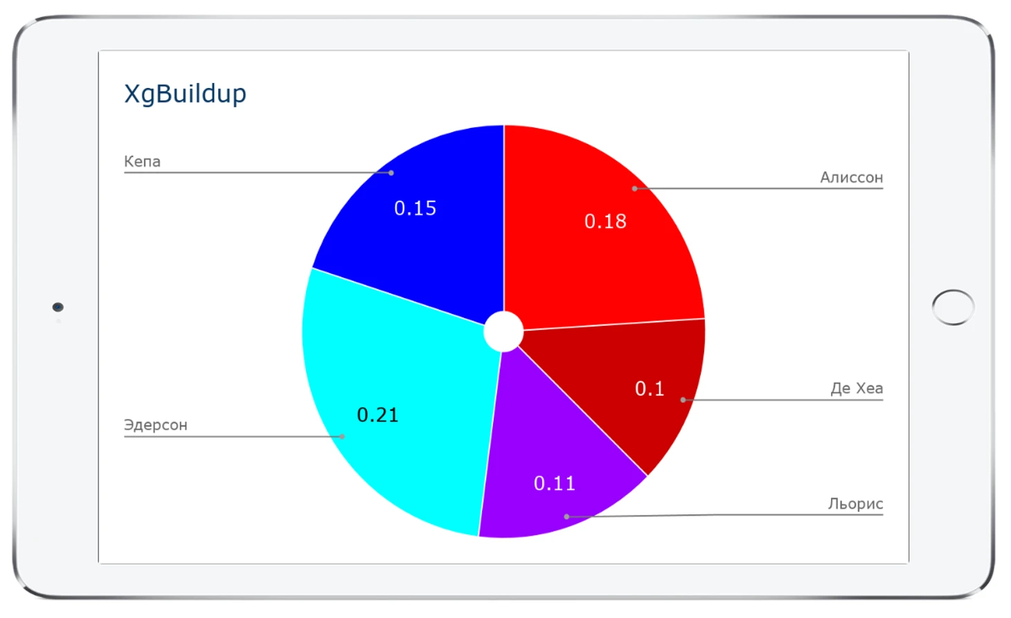 Современный голкипер участвует не только в оборонительной игре команды, но и активно помогает партнерам в построении атак. Показатель "XgBuildup" характеризует потенциальную опасность ударов после комбинаций, в которых участвовал футболист. По этому компоненту нет равных Эдерсону, к слову, это единственный вратарь из нашего "шорт-листа", в активе которого есть голевая передача в текущем сезоне. Мы видим, что Алиссон, немного уступающий своему визави из Сити, также очень качественно помогает своей команде в розыгрыше мяча, достаточно неплох и Кепа.