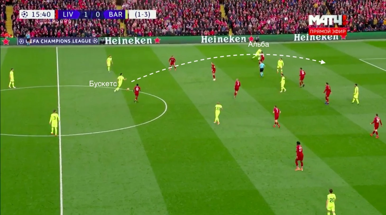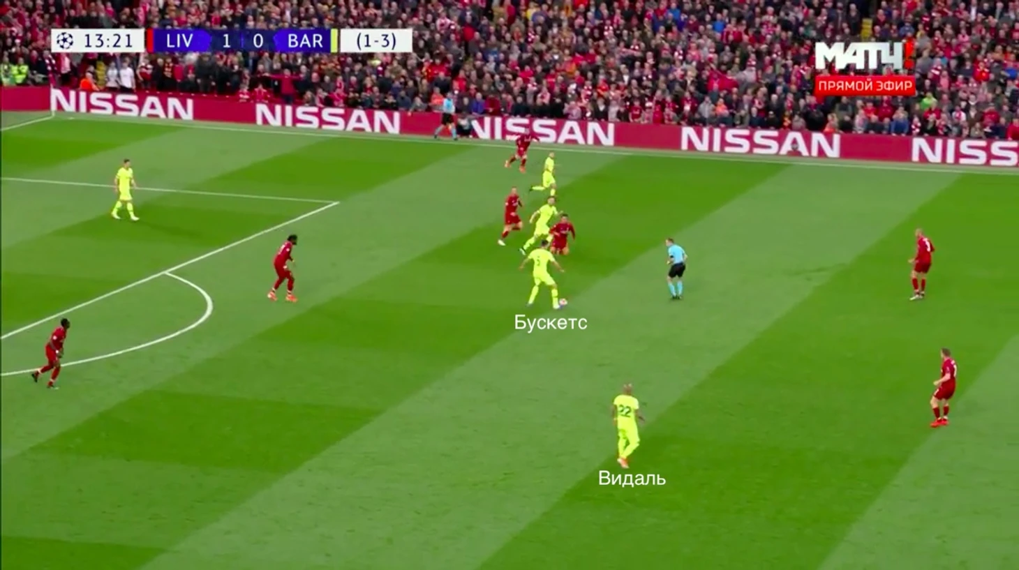 Умные действия Бускетса помогали преодолевать прессинг «Ливерпуля». «Красные» давили кусочно и с разрывами, а Серхи этим пользовался: