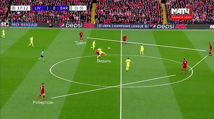 Высокие позиции крайних защитников у «Ливерпуля» увеличивали количество прессингующих игроков, но оставляли зоны при потерях в центре поля:
