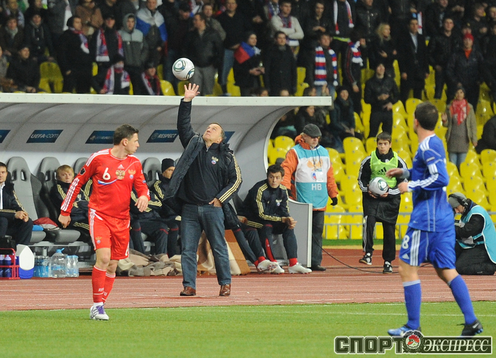С учетом резервистов даже с одной незаполненной строчкой (футболка с 8-м номером, похоже, стала сувениром для Широкова) у Адвоката имелась возможность повернуть игру в нужное русло. У андоррского рулевого Хесуса Альвареса же в запасе помимо вратаря Перианеса и защитника Сонеджи значились сплошь номинальные форварды. Оно и понятно: почти все оборонцы были включены в число первых одиннадцати. Перед стартовым свистком на табло, как и месяц назад, активно покрутили ролики о российско-армянской дружбе. А также провели чествование Виктора Онопко - рекордсмена национальной команды по числу матчей (113). От УЕФА через руки Сергея Фурсенко ему досталась медаль и кепка. Такие теперь положены всем сборникам Старого Света, сыгравшим за свою страну более ста встреч. На прощание нынешний тренер ЦСКА показал Аршавину и компании скрещенные руки. Мол, давайте, не подведите автора трех голов при победном дубле в ворота Андорры в квалификации Euro-2000.