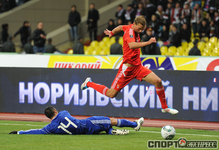 Гимн России и первые минуты позволили убедиться: "Лужники" не только заполнены (более 50 тысяч на полуформальной игре с "карликом"!), но и настроены болеть. Страстно. И не место ерничать о словацких премиальных Аршавина, выделенных на билеты на этот матч. Стадион погнал своих вперед. Или свои полетели вперед при таком стадионе. Ранний гол мог прописаться и не на 5-й минуте. Аршавин со товарищи приступили к осаде без раскачки. Счет был открыт после новой подачи капитана углового с левого фланга, неудачного выноса Гомеса и точного удара из пределов штрафной Дзагоева. И наступление продолжилось. Аршавин делал тонкие пасы, шел в обводку. Как-то удивил подключением справа. Партнеры старались не отставать.