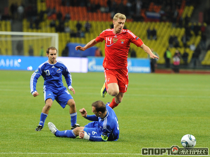 Аршавин заработал штрафной в проходе, который остановил только двойной андоррский "шлагбаум". Сам же и подал. Игнашевич выпрыгнул выше махнувшего на выходе Гомеса. На этот раз отменять взятие ворот причин не было. Вскоре Шишкин быстро разыграл штрафной, Дзагоев продлил передачу в сторону Глушакова, тот отвоевал мяч и отпасовал Аршавину. Капитан с радиуса бить не стал, нашел левее Павлюченко. Форвард с сопротивлением соперника сделал угол атаки острее и прошил вратаря. Тот пропустил мяч под рукой. Под занавес первого тайма россияне выбили "четверку". Зашли слева с подключением А. Березуцкого, сместились направо с включением Шишкина. Защитник не хуже Анюкова после "стеночки" вошел в штрафную и сделал скидку на Дзагоева. Полузащитник положил корпус и боковыми "ножницами" в падении пробил в дальний угол.