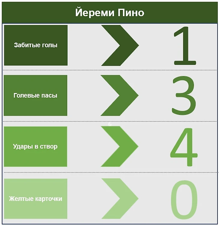 Йереми Пино был не столь заметен. Во всех матчах отбора он не забил ни одного мяча, но сделал 2 голевые передачи. В матче с Австрией он забил гол и сделал голевую передачу.