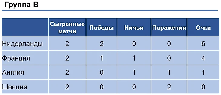 Ниже представлена таблица группы, в которой играют Нидерланды: