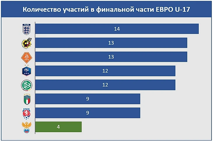 Для начала мы должны понимать, что Россия прошла в финальную часть ЕВРО-U17 только в 4-ый раз. Из всех сборных, принимающих участие в этом ЕВРО, реже добирались до этой стадии только исландцы, а Россия делит предпоследнее место со Швецией по этому показателю. При этом сборная России очень парадоксальная команда: в рамках своих выступлений в финальных частях ЕВРО наша сборная умудрилась дважды победить в турнире, в 2006 и 2013 года, а в 2015 команда добралась до полуфинала.