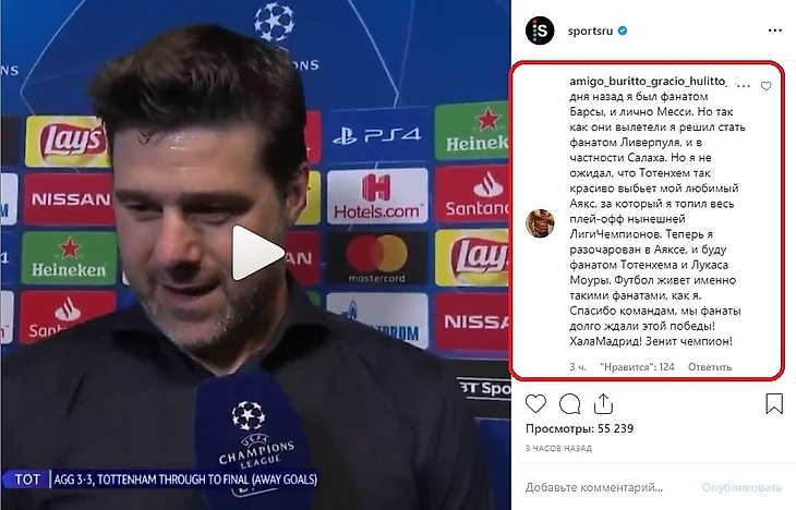 Пользователь amigo_buritto_gracio_hulitto_ классно описал весь спектр своих чувств под одним из постов в инстаграме Sports.ru. Лучший комментарий недели!