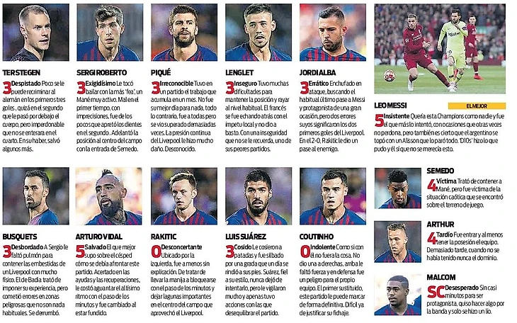 Оценки игроков "Барселоны" по итогам ответного матча 1/2 финала ЛЧ. Тот момент, когда даже перевод неуместен