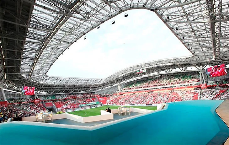 А еще пару месяцев назад в телеграме завирусился бот, который прикреплял к любой фотографии открытый бассейн. Конечно, я сразу подумал про стадион «Рубина».