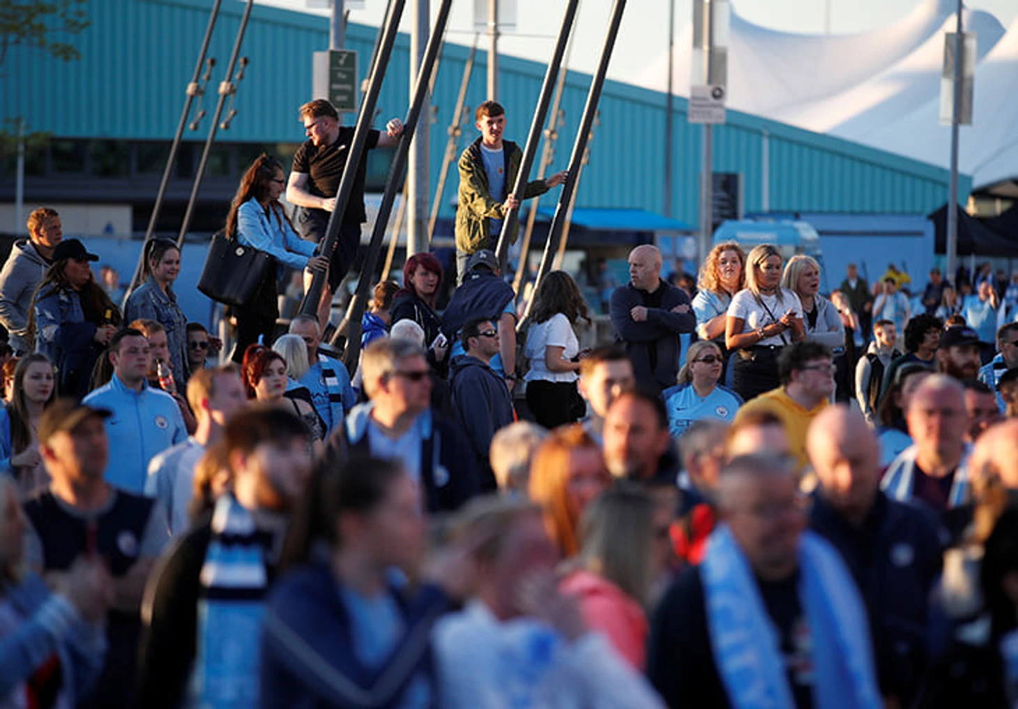 Я провела последний день сезона в Ливерпуле, и дорога на поезде от Мерсисайда до Большого Манчестера заняла меньше часа. За это время добраться до «Этихада» успели даже не все фанаты «Сити»: к 20:30 у ворот столпились всего пара сотен человек. Еще чуть больше тысячи уже ждали у сцены: клуб показывал матч с «Брайтоном» на стадионе. Остальные подтягивались по ходу, и к приезду команды под стенами «Этихада» оказались около пары тысяч фанатов.