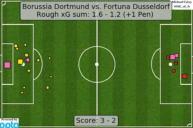 Однако все веселье осталось, как выяснилось, на второй тайм. «Фортуна» выполняла очень простые подачи, одна из которых помогла Оливеру Финк направить мяч головой в ворота, и Марвин Хитц сначала почти зафиксировал мяч в руках, а потом нелепейшим образом выронил его прямо в ворота –в итоге счет сравнялся. «Боруссия» поспешила оправдаться всей командой за такую оплошность своего вратаря. Сначала Геррейру разыграл довольно опасный штрафной, заставив вратаря Ренсинга понервничать, совершая не самый простой сейв. Ну а потом почти внезапно случилась необычайно длинная передача на Гетце от Витцеля, явно скучавшего весь первый тайм. Марио, в свою очередь, прострелил в касание в центр штрафной, где уже в одиночку разобрался Дилэйни, направивший мяч с левой ноги в левый же угол ворот.