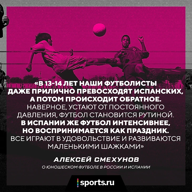 – В «Торре Леванте» 13-летний Толя играл за старших (14 лет). В этом возрасте наши футболисты даже прилично превосходят испанских, а потом происходит обратное. Наверное, устают от постоянного давления, футбол становится рутиной. В Испании же футбол интенсивнее, но воспринимается как праздник. Все играют в удовольствие и развиваются маленькими шажками.