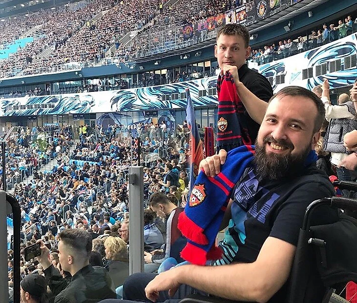 " Ты помнишь как всё начиналось… Вернулся с семьёй с выезда в Питер. Собственно о футболе не буду. Хочу сказать о другом. Первый раз в Ленинград (хотя уже тогда мы его все звали Питером), на выезд за армейцев, я попал глубокой осенью 1981-го. Это был двойник. Но сначала был Минск. Собственно, мой первый выезд. Недавно зародившееся армейское фан-движение только набирало обороты, и на матче с минским «Динамо» было человек за сто. Точно уж и не помню. А вот в Питер из них вместе со мной поехало человек пять. Многие знают, что уже десять лет я на футболе бываю, со ставшим инвалидом сыном. На фото, армейские болельщики с инвалидностью, вчера на выезде в Питере. А над ними, на трибуне В- почти шесть тысяч! Как же количественно и качественно выросло армейское фан-движение!"