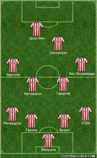 "Сандерленд" (4-4-1-1): Миньоле - О′Ши, Браун, Тёрнер, Ричардсон - Эль Мохаммади, Каттермол, Гарднер, Ларссон - Сессеньон - Донг-Вон.