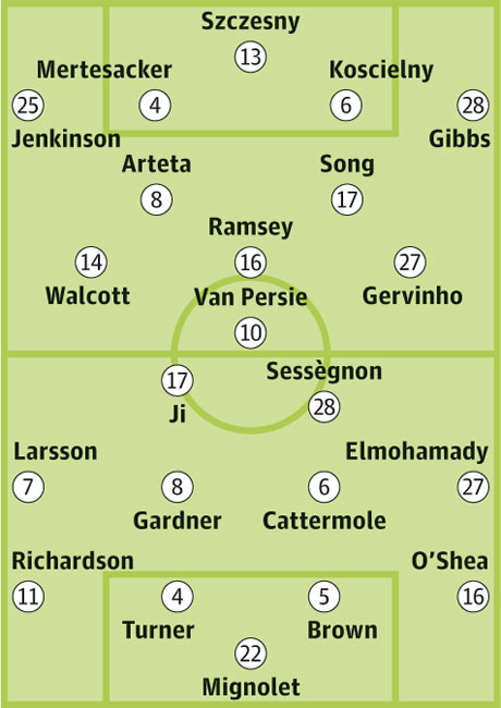 Пока давление на Арсена Венгера и его команду после очередного поражения от Тоттенхэма продолжалось,футболисты Арсенала могли хоть как то отвлечься от проблем клубных в своих сборных . Принимая у себя дома Сандерленд Стива Брюса которые также не блещет результатами, Арсенал рассчитывает распрощаться с двумя семерками в графе таблицы,сыграть восьмой матч и набрать полновесные три очка.Бывшие канониры Себастьян Ларссон и Никлас Бендтнер на сегодня является основными фигурами в составе "котов".Никлас Бендтнер поклялся что больше никогда не вернеться в Арсенал,более того он не сможет сыграть и в предстоящем матче,по арендному соглашению он не имеет на это право.Что касается потерь то они вновь дают о себе знать,Бакари Санья присоединился к списку долгосрочно отсутствующих после матча с шпорами.Однако есть и хорошие новости,Томас Вермален намерен вернуться в состав в ближайшие несколько недель,то же самое касается и Косьелни с Джуру.