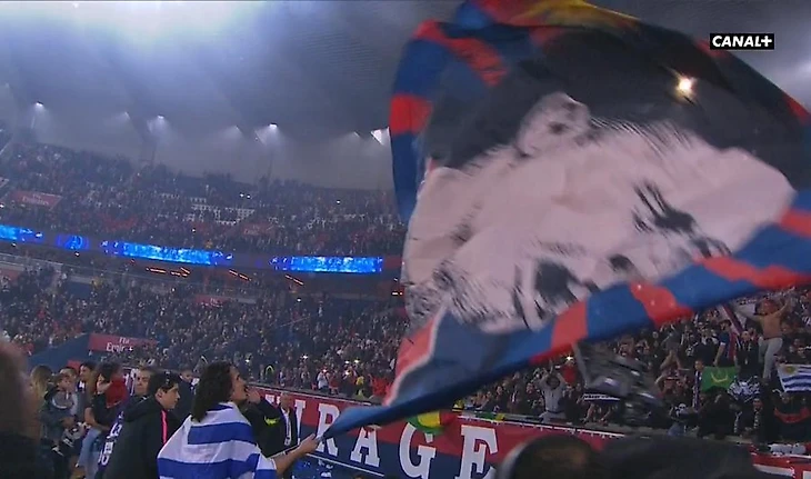 Кавани празднует чемпионство «ПСЖ», размахивая флагом со своим изображением