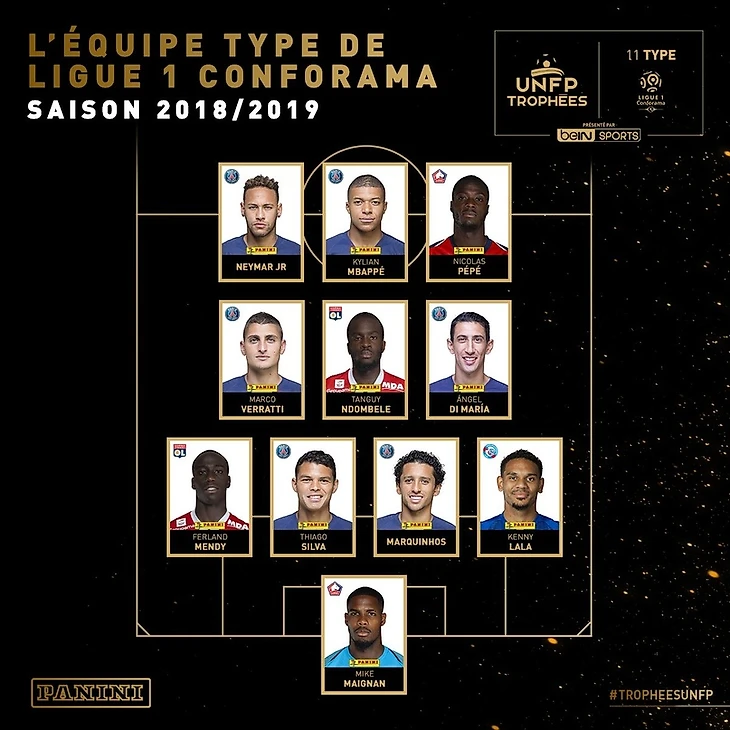 Сборная сезона: Майк Меньян («Лилль») — Кенни Лала («Страсбур»), Маркиньос (ПСЖ), Тиаго Силва (ПСЖ), Ферлан Менди («Лион») — Марко Верратти (ПСЖ), Танги Н'Домбеле («Лион»), Анхель Ди Мария (ПСЖ) — Николя Пепе («Лилль»), Килиан Мбаппе (ПСЖ), Неймар (ПСЖ).