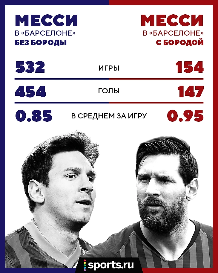 И так недавно думал - вот кто нибудь посчитал бы стату Месси с бородой и без. И вот вышла!