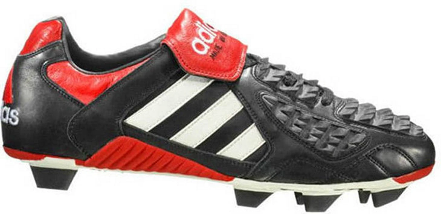 Первые adidas Predator представили в 1994 году перед чемпионатом мира в США. Бутсы стоили больше 100 фунтов, что было неприлично дорого по тем временам. Но тестирование показало, что игроки с «хищниками» на ногах сильнее били и лучше контролировали мяч. Топовое сцепление объясняли инновационными резиновыми полосками на верхней части обуви.