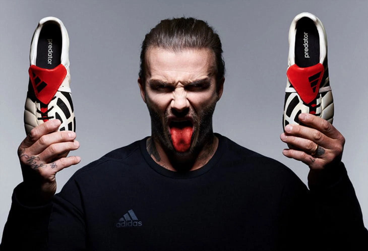 Знаменитый гол был забит в «хищниках», причем чужих. Дэвид слышал о новых бутсах и перед стартом чемпионата попросил adidas выслать ему пару. Трудно поверить, но для будущего символа Predator еле нашли обувь подходящего размера. «Я получил бутсы перед игрой. Они оказались изготовлены персонально для Чарли Миллера (полузащитник «Рейнджерс»). Имя было вышито на язычке. Парни в раздевалке это сразу заметили», – вспоминал Бекхэм.
