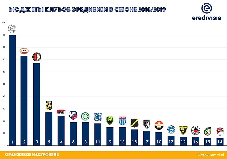Как посчитали аналитики Voetbal International, в этом сезоне бюджет «Витесса» составляет 27 млн. евро. Бюджет «Утрехта» – 19 млн. евро. Разница в зарплате пока неизвестна. А вот тезис «лучше состав» вызывает сомнения. Очевидно, что Дик Адвокат немного прибедняется.