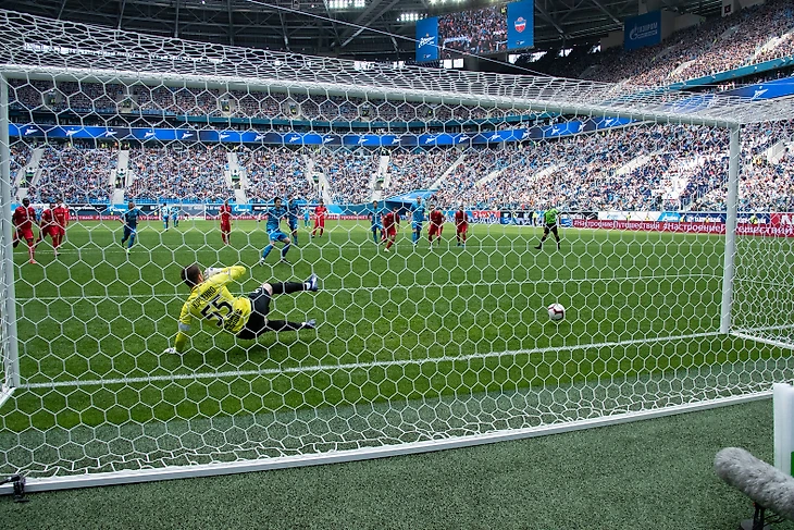 Первый гол сине-бело-голубые забили с пенальти: Ярослав Ракицкий исполнил штрафной удар, мяч попал в руку защитнику "Енисея". Судья назначил пенальти, а Азмун не промахнулся. Это его уже девятый гол за «Зенит» в РПЛ.