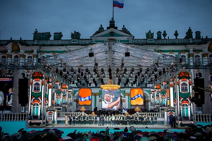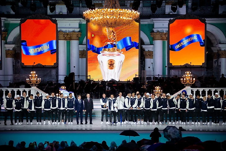 Через час, добравшись до Невского проспекта, чемпионы пересели в золотой двухэтажный автобус. Команда проехала по главной улице города, а завершили парад у на Дворцовой площади. Игроки и тренеры «Зенита» поднялись на сцену ежегодного фестиваля «Классика на Дворцовой» и поблагодарили болельщиков за поддержку на протяжение всего сезона.