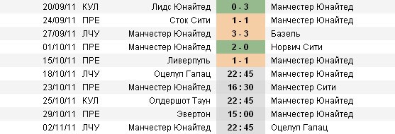 Кстати, довольно интересным фактом является то, что в последний раз, «Манчестер Юнайтед» не сумел одержать победы в первых двух турах Лиги Чемпионов в сезоне 1998/1999, который в итоге завершился триумфом англичан, и феноменальным матчем в финале, где в добавленное время, была добыта историческая победа над мюнхенской «Баварией»!