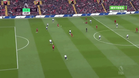 К чему я веду? Первый гол, забитый "Ливерпулем" был именно следствием того, что "мерсисайдцы" перегрузили фланг Салаха игроками, заставив сместиться практически всех игроков "Тоттенхэма" в эту зону, а далее перевод на абсолютно пустой фланг и это был не единичный случай, к этому голу мы вернемся позднее.