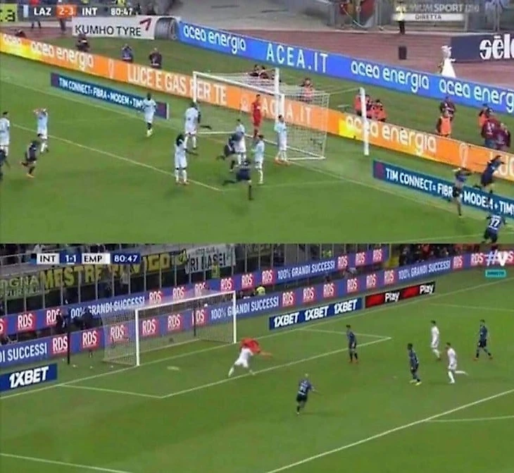 Второй год подряд Матиас Весино мог стать спасителем "Интера". Но на этот раз его удар пришёлся в штангу, лавры героя достались Радже Наингголану.Однако, что поражает больше всего, так это сходство во времени между голами уругвайца и бельгийца. Оба были забиты, когда хронометраж игры был на 80:47