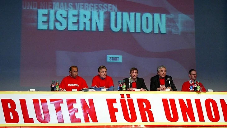 В 2004 году "Унион" лавировал на грани банкротства - команде не хватало 1,5 миллиона евро на получение профессиональной лицензии. Узнав об этом, фанаты собрали деньги оригинальным способом - на станциях переливания крови прошел марафон доноров "Кровь за Унион". Разумеется, необходимой суммы собрать не удалось,но часть долгов отбили как раз при помощи неравнодушных.Похожая неприятность напала на "Унион" в конце 90-ых - тогда в магазинах появились коробки для мелочи, с надписью " 5 марок на Унион", а марш 3000 фанато через Бранденбургские ворота привлек внимание компании Nike, профинансировавшей спасение команды.
