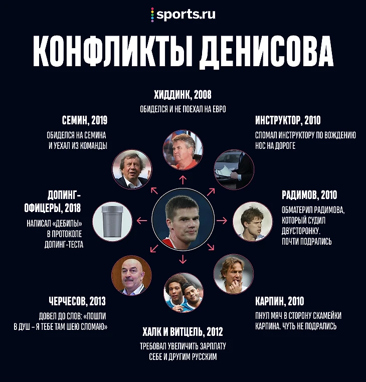 Все конфликты Игоря Денисова: обматерил Радимова, обиделся на Хиддинка, дрался с автоинструктором