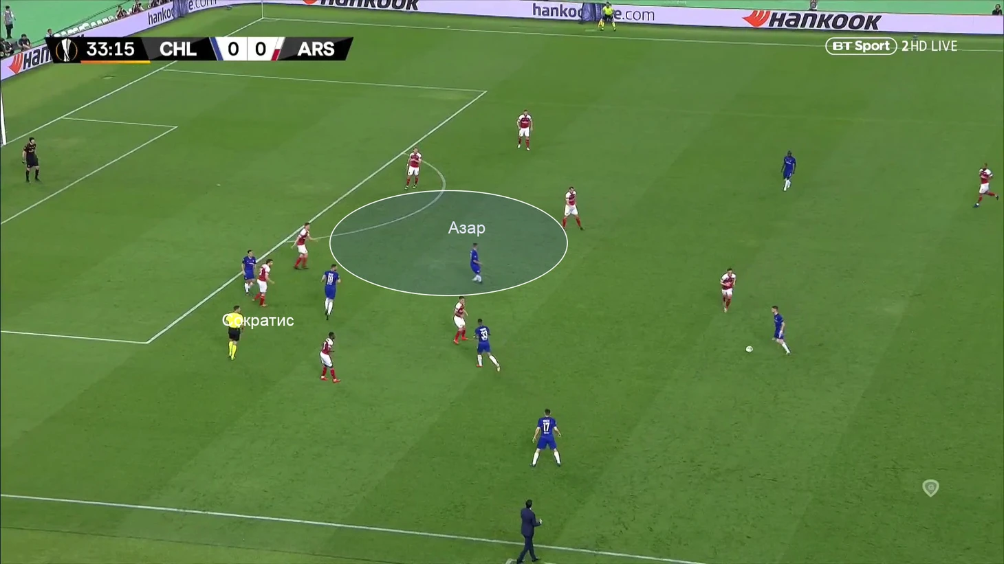 Вчера такой сценарий был практически невозможным. Нужно было построить прессинг именно на фланге Азара. Если бы речь шла об обычном игроке, то Сократис просто плотно сыграл бы против него – рискованно, но вполне реально. Но Азар слишком страшный, а Эмери не придумал, как сохранить баланс и сдержать бельгийца.