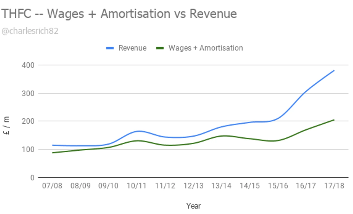 Как понять, что клуб здоров? Для «Тоттенхэма» все очень просто: выручка и затраты идут нога в ногу. Приход Почеттино и выстроенная им система позволила отложить на стадион. Три года Лиги чемпионов подряд, жирный телевизионный контракт и умеренная трансферная политика позволили «Тоттенхэму» обновить всю инфраструктуру.