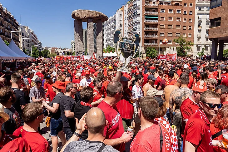 На эти выходные Мадрид перестал быть городом «Реала» и «Атлетико». Власть временно у английских гостей. Центр мира сегодня на площади Фелипе II. Кажется, здесь собралась вся красная часть Ливерпуля.
