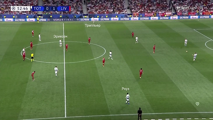 5. Учитывая, что «Ливерпуль» поддерживал привычную интенсивность прессинга, показатель владения «Тоттенхэма» (65%) все еще выглядит ненормальным и необъяснимым. Ключ к пониманию – действия «Ливерпуля» с мячом. Тут правда было много нового.