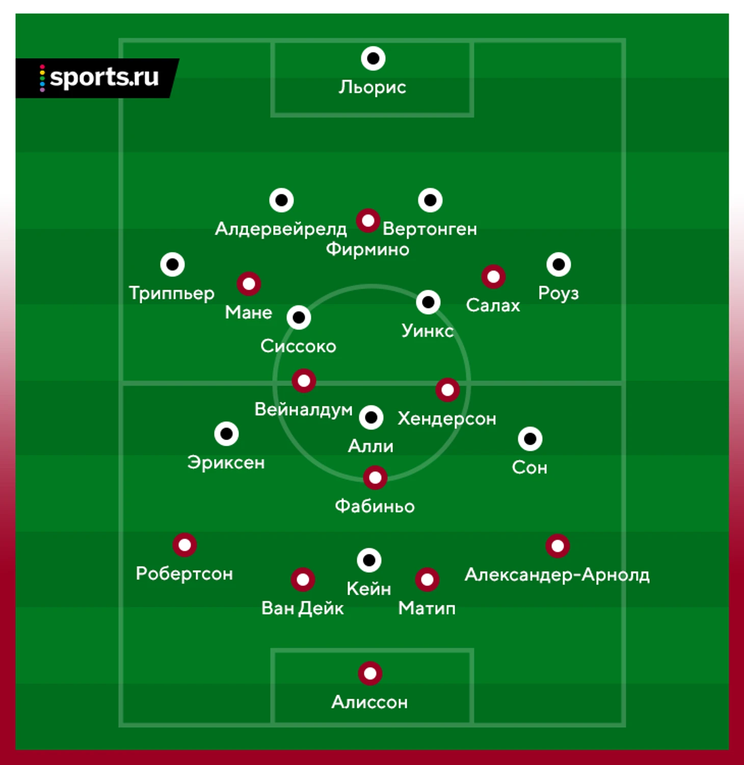 Прессинг Клоппа работал. Три самых пасующих игрока «Тоттенхэма» в первом тайме – защитники Алдервейрелд, Триппьер и Вертонген. Команда не выбиралась на чужую половину поля.