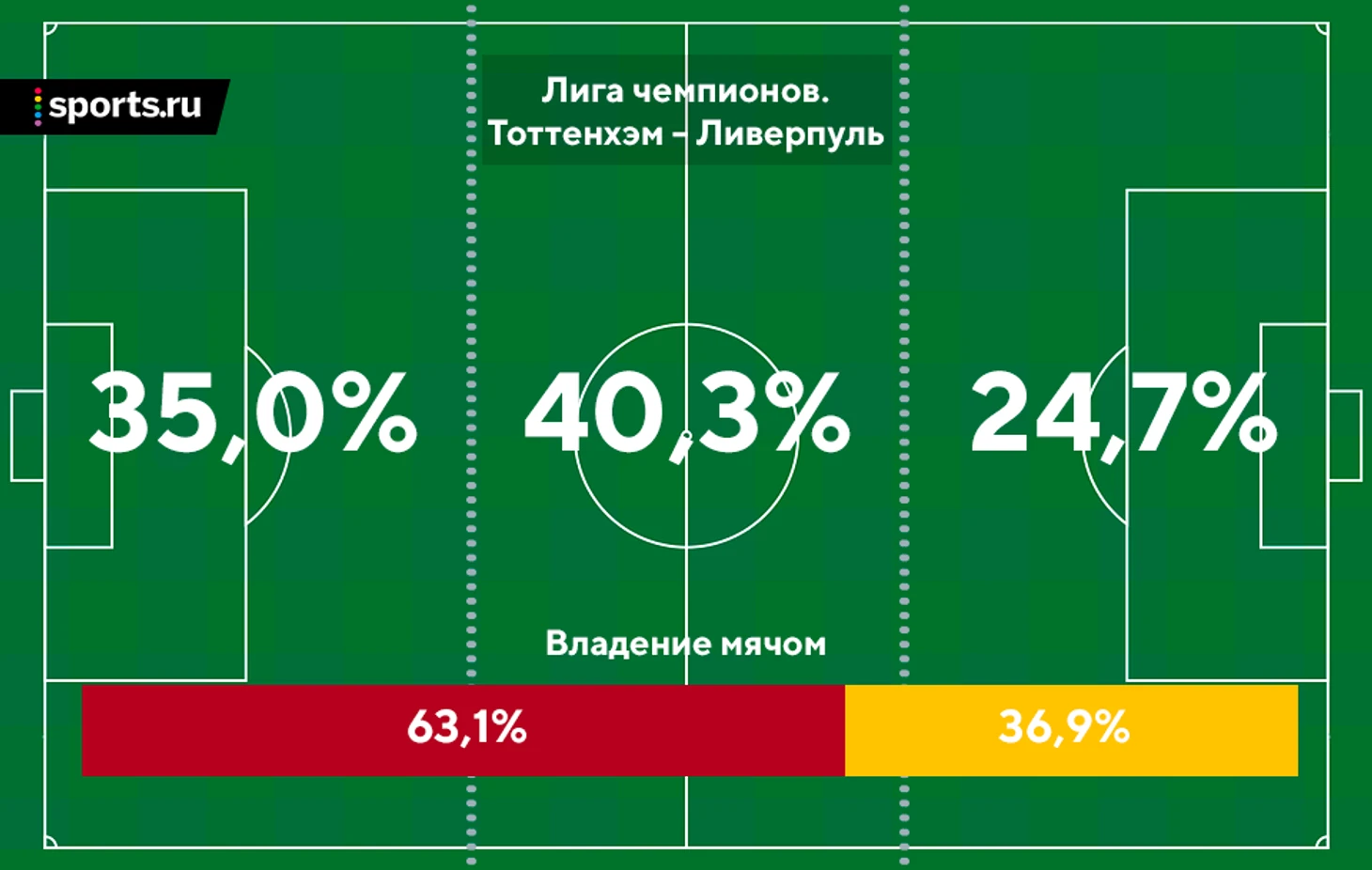 Во-первых, это нетипичные 35% владения. Обычно низкое владение идет в комплекте с автобусом. Не случай «Ливерпуля» – они не просто контролировали территорию, они территориально доминировали (33% действий на трети соперника).
