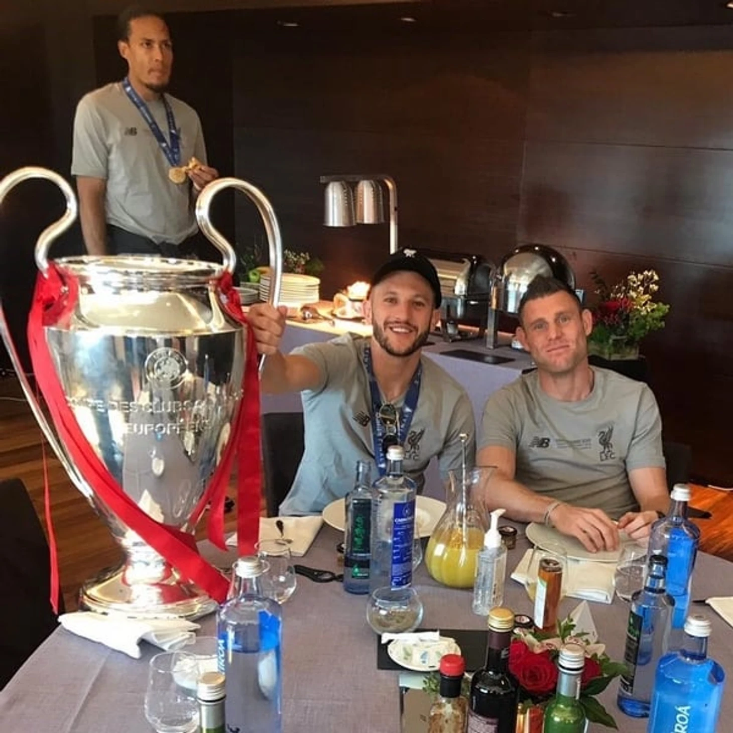 Ван Дейку не до кубка: даже на фуршете контролирует, чтобы его никто не обвел.